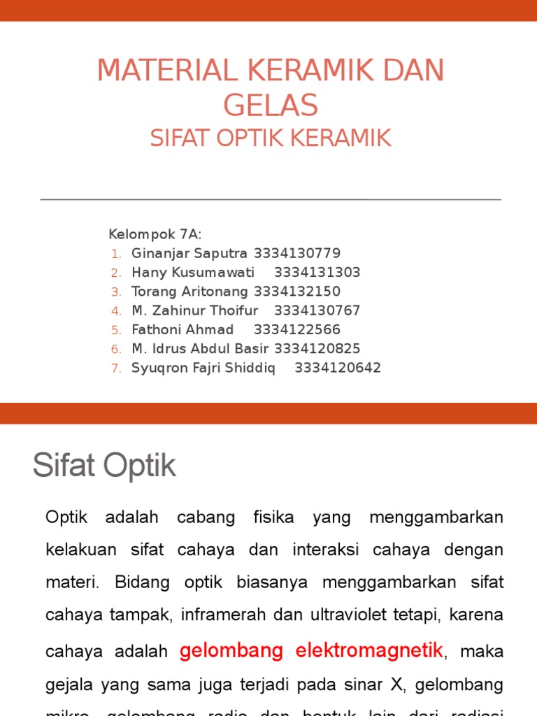 Sifat Optik Keramik Kelompok 6 Hadi Perdana Ppt Download