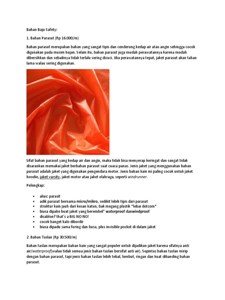 11 Jenis Kain Parasut Yang Mungkin Belum Kamu Ketahui