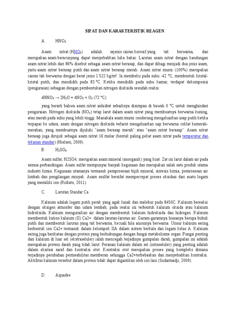 Sifat Dan Karakteristik Reagen