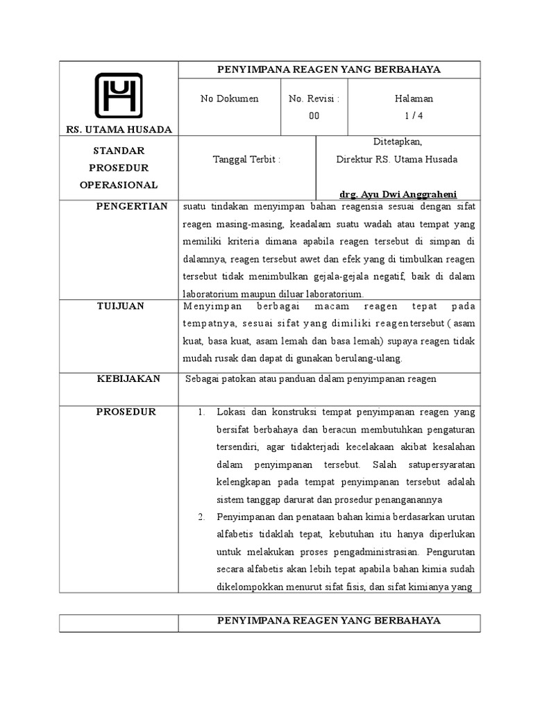 Sop Penyimpanan Reagen