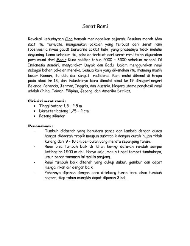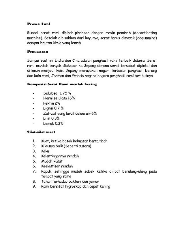 Sifat Serat Rami Welcome To Adhiputrabusana