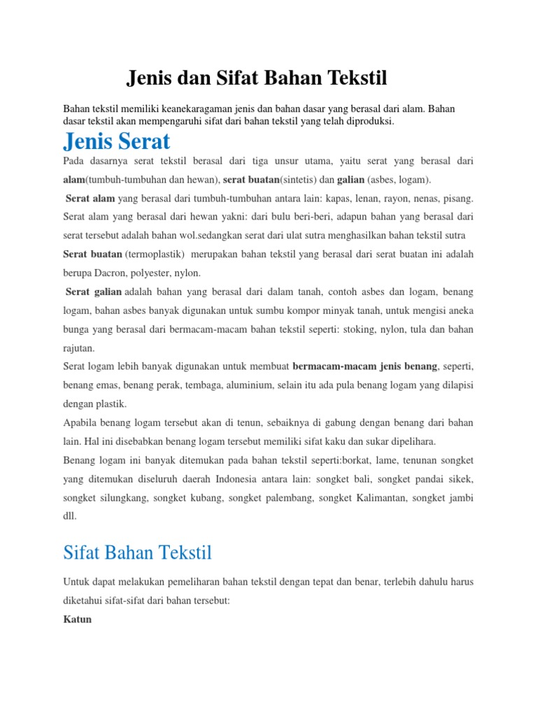 Doc Jenis Dan Sifat Bahan Tekstil Xcnation 1245 Academia Edu