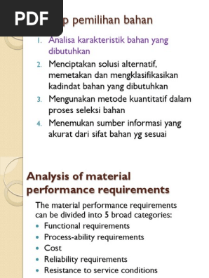 Prinsip Pemilihan Bahan Analisa Karakteristik Bahan Yang