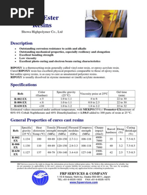 Vinyl Ester Resins Epoxy Fibre Reinforced Plastic