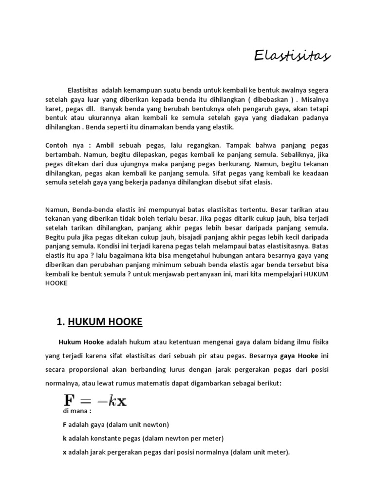 Elastisitas Adalah Kemampuan Suatu Benda Untuk Kembali Ke Bentuk Awalnya Segera Setelah Gaya Luar Yang Diberikan Kepada Benda Itu Dihilangkan