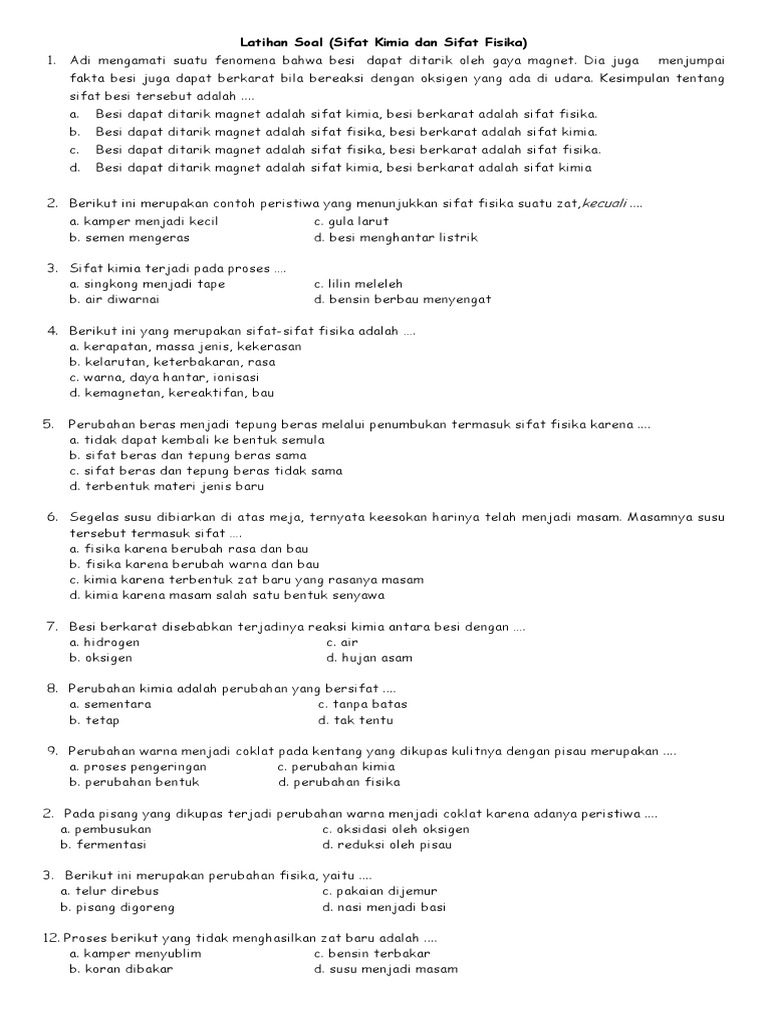 Latihan Soal Sifat Kimia Dan Sifat Fisika