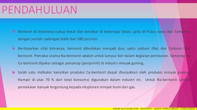 Bentonite Bahan Galian Industri Bonita