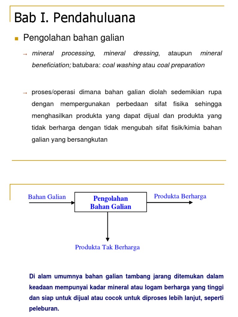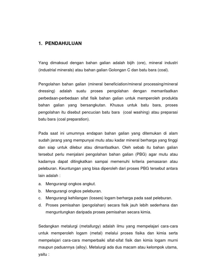 Bab I Pendahuluana Pengolahan Bahan Galian