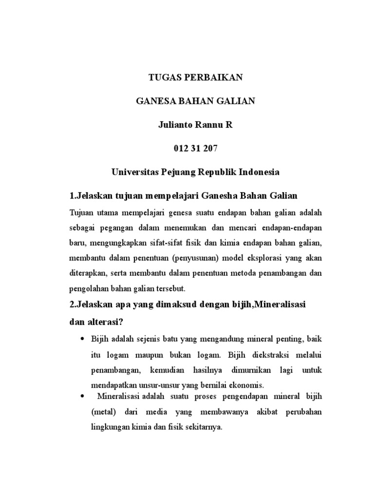 Doc Soal Soal Pengolahan Bahan Galian Gladys Gloria Academia Edu