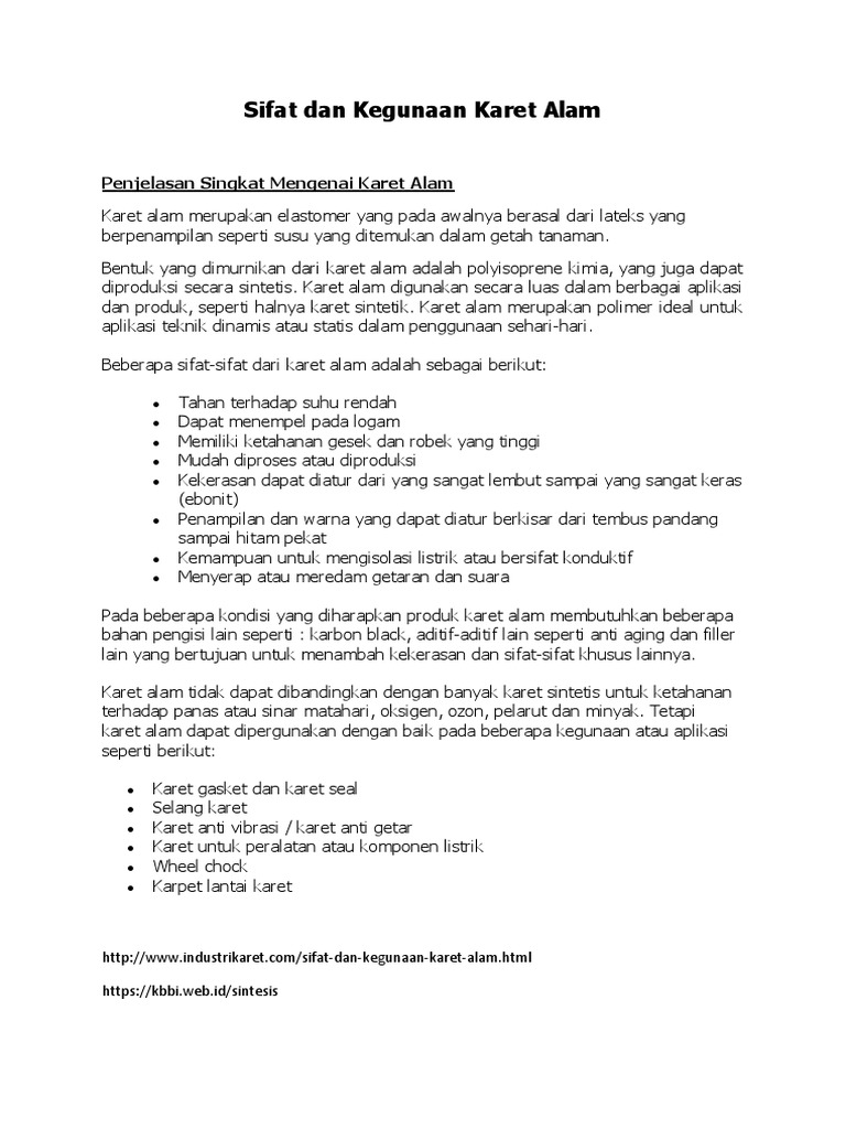 Sifat Fisik Bahan Karet Alami Adalah