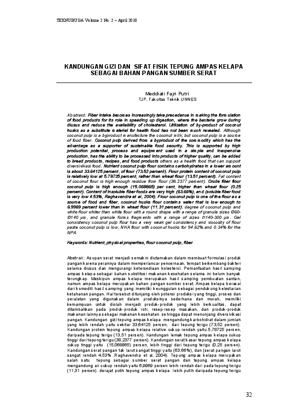 Pdf Teknubuga Volume 2 No 2 April 2010 32 Kandungan Gizi Dan