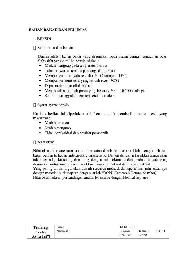 Sifat Utama Dan Persyaratan Bahan Bakar Bensin Teknik Otomotif Com