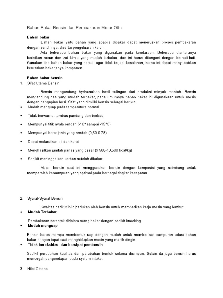 Bahan Bakar Bensin Dan Pembakaran Motor Otto