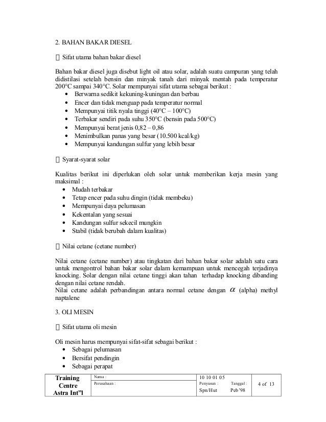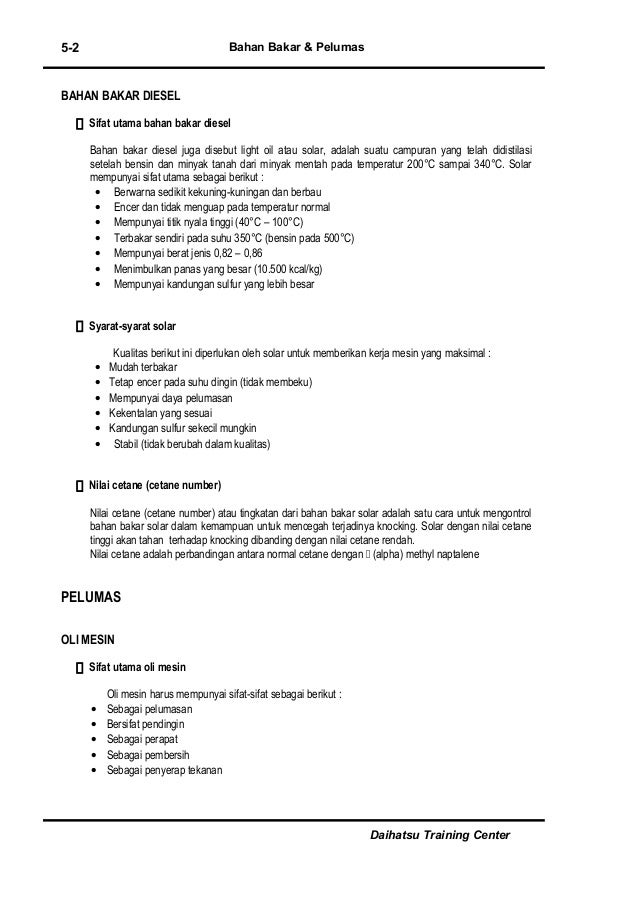 Sifat Utama Bahan Bakar Diesel Lks Otomotif