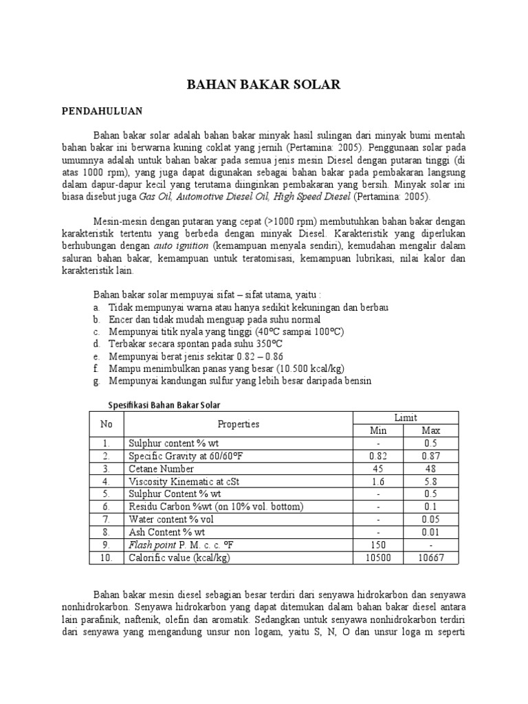 Doc Bahan Bakar Solar Dan Pembakaran Motor Diesel Tarip Sumito