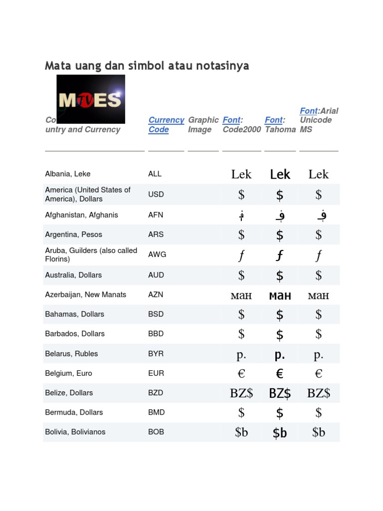 Simbol Kode Dan Nama Mata Uang Berbagai Negara Di Dunia Berbagi