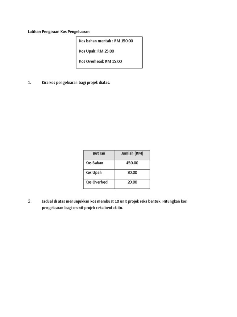 Doc Latihan Kos Pengeluaran Suraya Daud Academia Edu