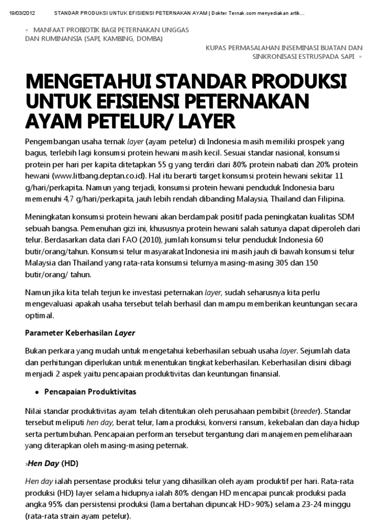 Standar Produksi Untuk Efisiensi Peternakan Ayam