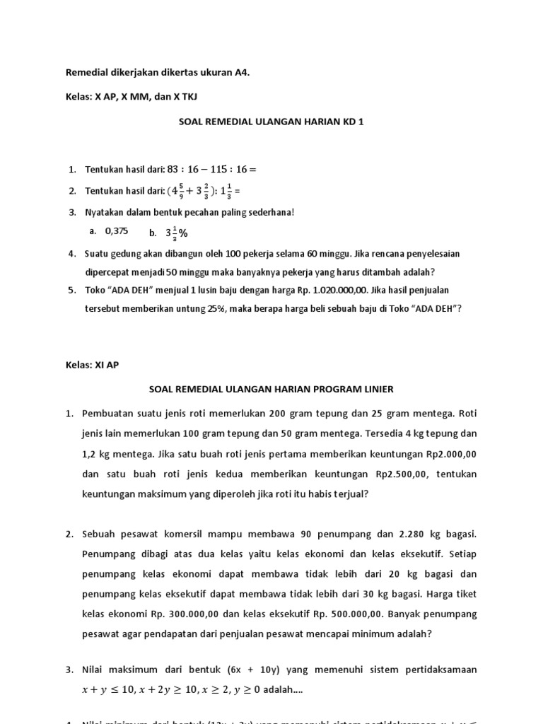 Soal Remedial Nilai