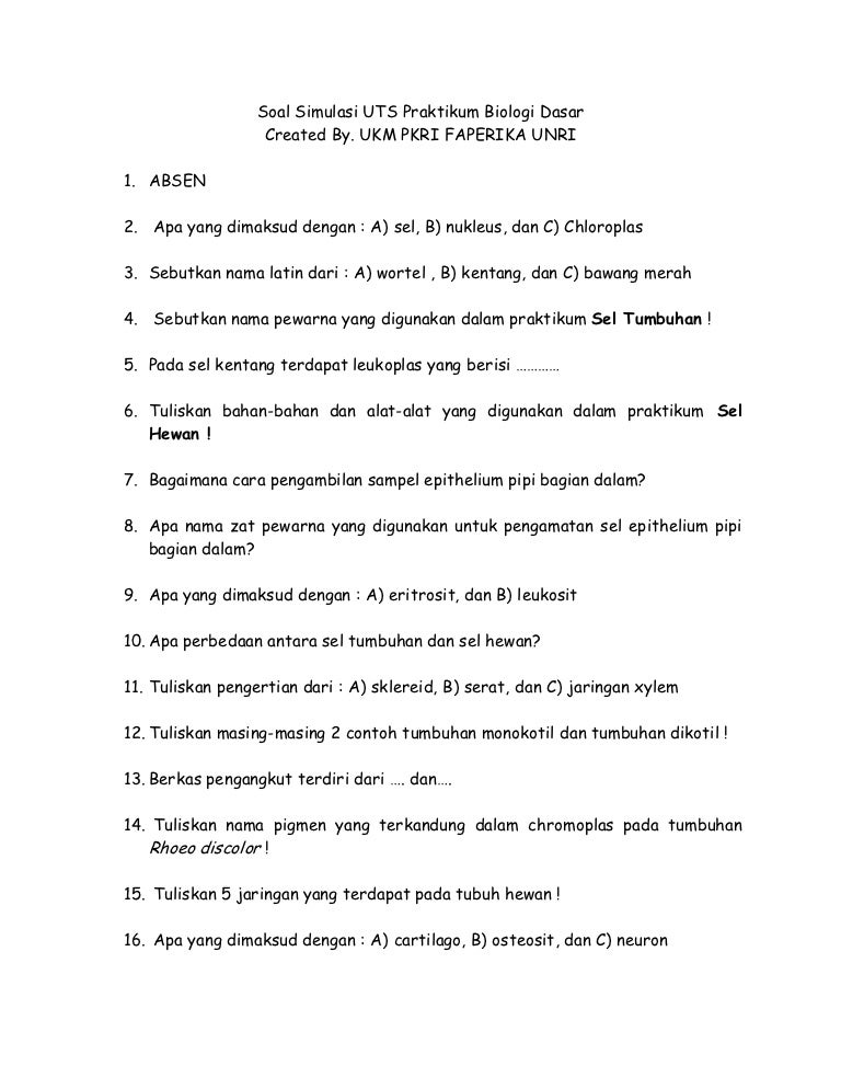 Soal Simulasi Uts Praktikum Biologi Dasar